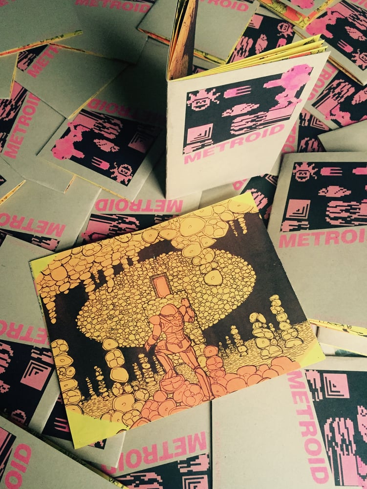 Originally intended to be a love note to Metroid, this fully risographed zine became more of a stalker's ransom note for Samus Aran. 16 pages + covers collecting sketches, finished drawings, and all stages in between of Samus, Zebes, and those pesky 'Troids.
